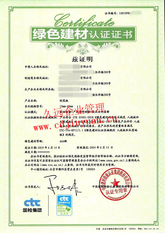 綠色建筑選用產品認證證書